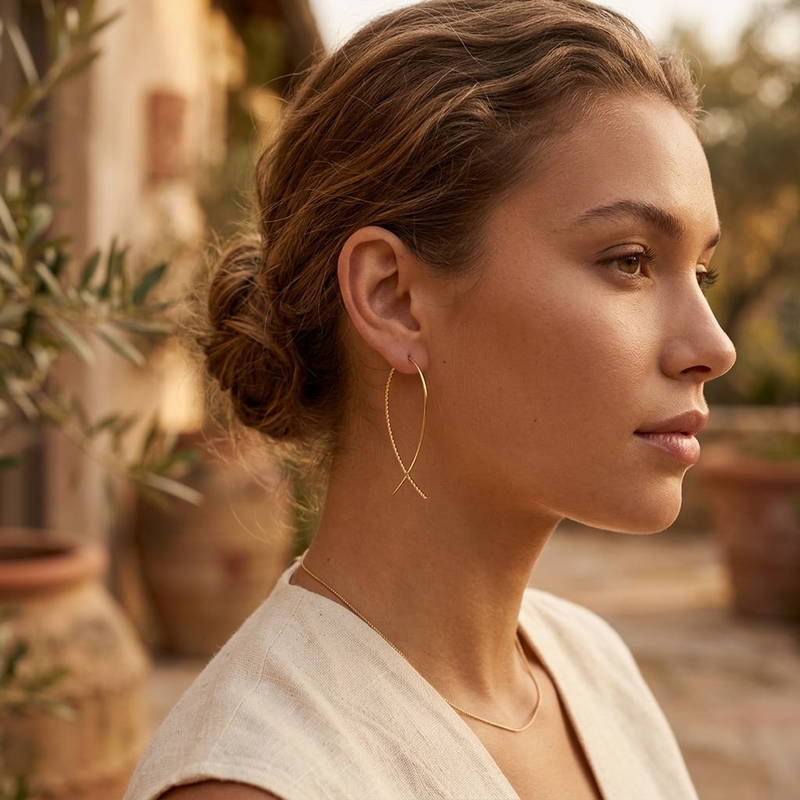 Het ontwerp speelt met twee structuren: strak gepolijst, verguld zilver en een zichtbaar gedraaide zijde die extra reliëf en sprankeling geeft. Dankzij het doortrekmodel draag je ze soepel en comfortabel, perfect bij zowel een rustige daglook als een avondoutfit. Bastian Inverun komt in dit paar mooi naar voren in pure vorm en finesse.