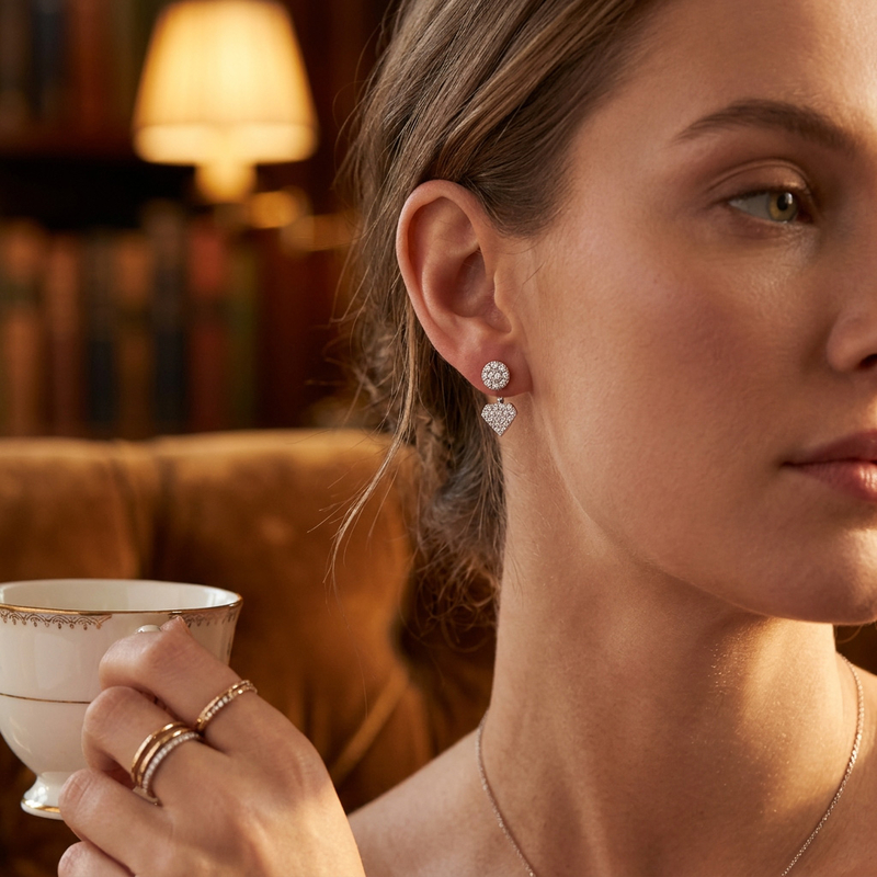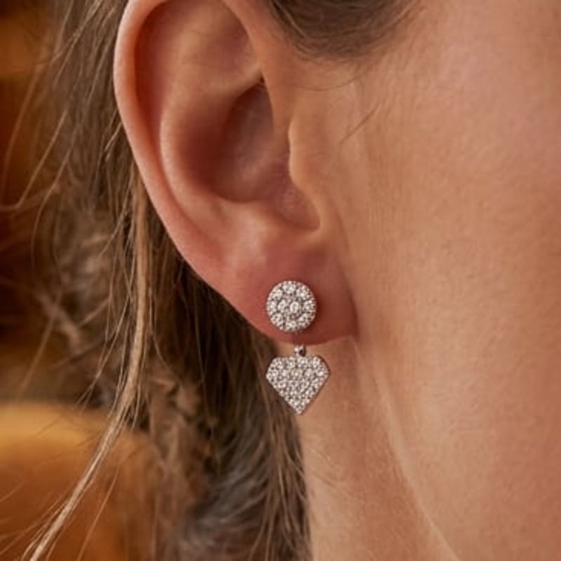 Deze mooie zilveren oorbellen zijn perfect voor elke gelegenheid. Ze bestaan uit twee delen: een klein knopje met glinsterende zirkonia’s dat op het oor zit, en een schattig hartje met zirkonia dat net onder het oor hangt. Dit geeft een speels en elegant effect.