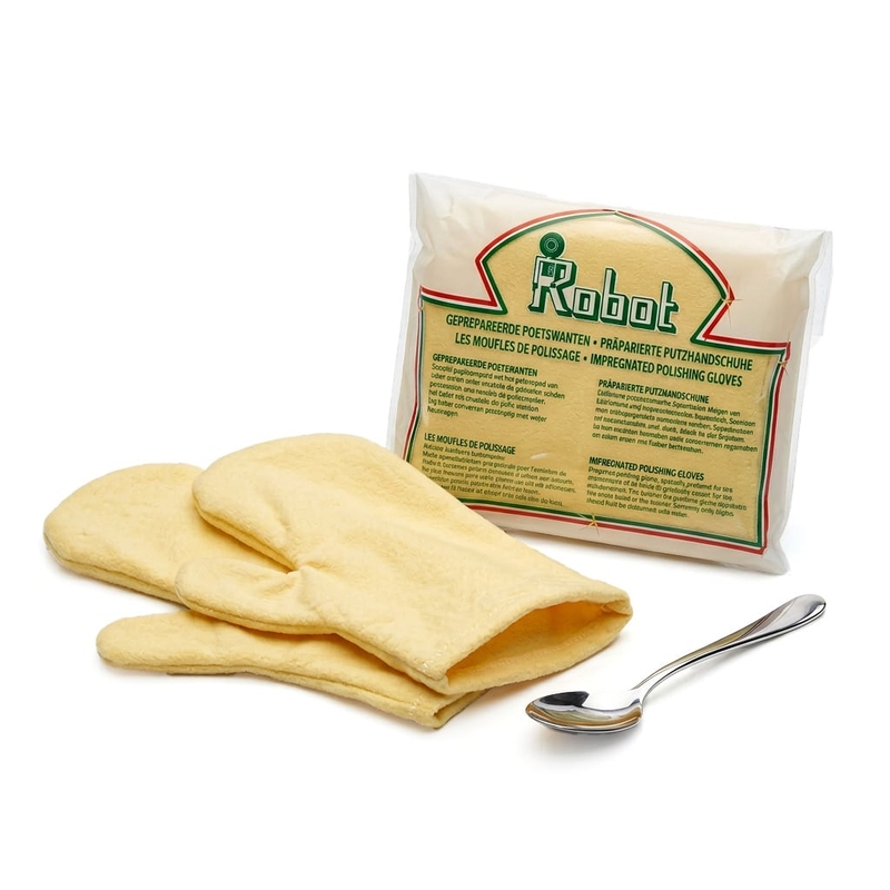 Uw zilver bijhouden in een handomdraai! Ze zijn er weer; poetswanten, deze zijn gemaakt van een geimpregneerde stof die de doffe aanslag op uw zilver en goud verwijderd. De poetshandschoenen zijn gevoerd dus u krijgt geen vieze handen. Prijs per paar.