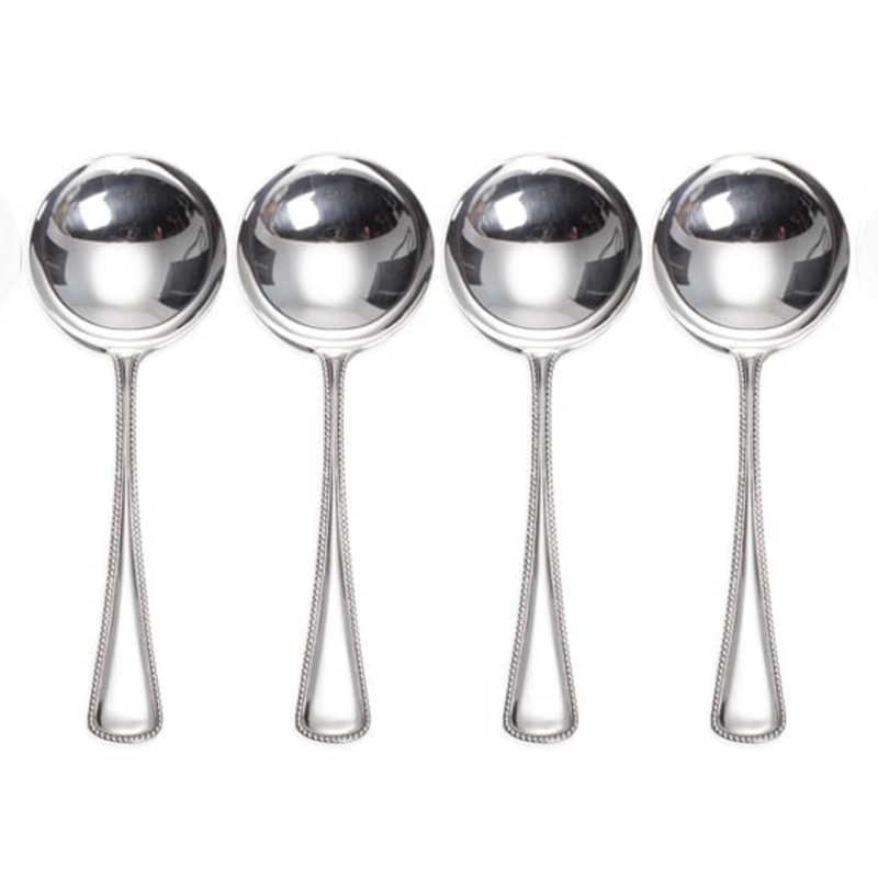 Prachtige set van 4 zilveren bouillonlepels in model parelrand gemaakt door de Gebroeders Huisman te Schoonhoven in 1973 in nieuw staat. Zo chique en bruikbare deze stevige zilveren lepels met een ronde bak en een elegante parelrand langs de steel. De zilveren lepels zijn 14,9 cm lang en de diameter van de bak is 4,9 cm, ze wegen samen 140 gram. (4)
