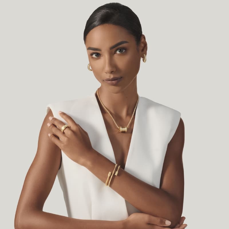 Het ontwerp combineert een glad, gelaagd buisprofiel met contrasterende uiteinden in croco-textuur, die mooi doorlopen in de kleine decoratieve eindkapjes bij de sluiting. Zoals je van Giovanni Raspini mag verwachten, is dit sieraad met de hand vervaardigd in het eigen atelier, met aandacht voor proportie en afwerking.