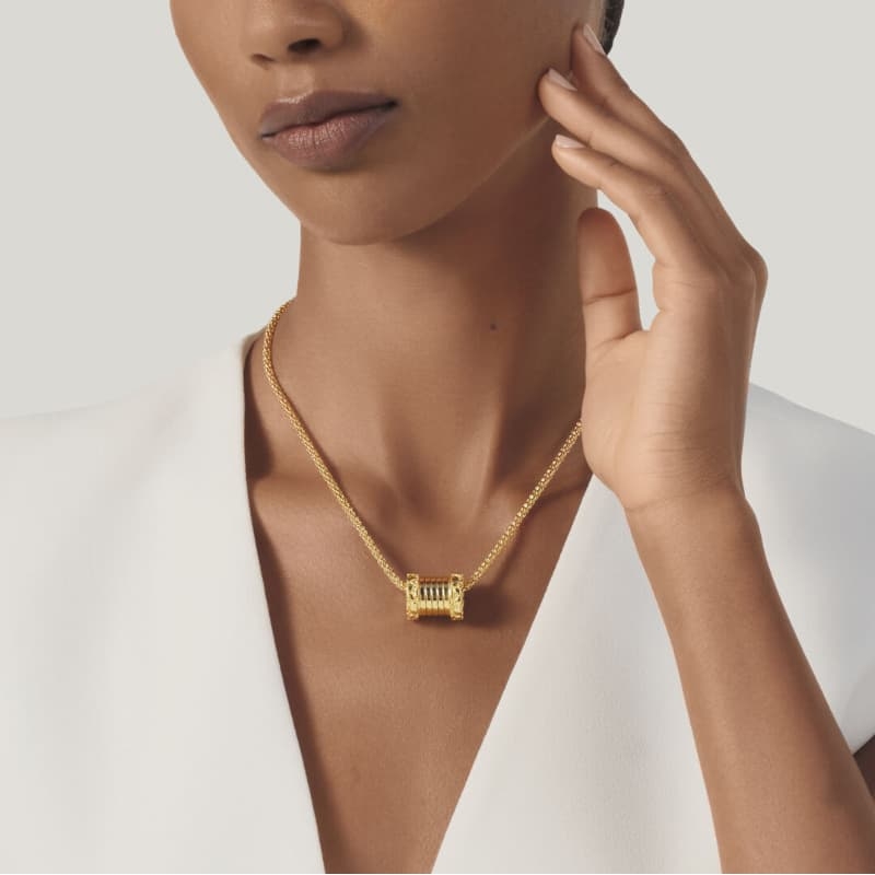 Deze Gold-Plated Croco Tubogas Small Necklace vangt het licht met een soepel, rond tubogas-element als centraal detail. De ketting is van verguld sterling zilver en hangt aan een vergulde zilveren schakelketting met een verfijnde, klassieke uitstraling. Het cilindervormige middendeel meet circa 1,85 cm en de draaglengte is 45 cm; afgewerkt met een stevige karabijnsluiting.