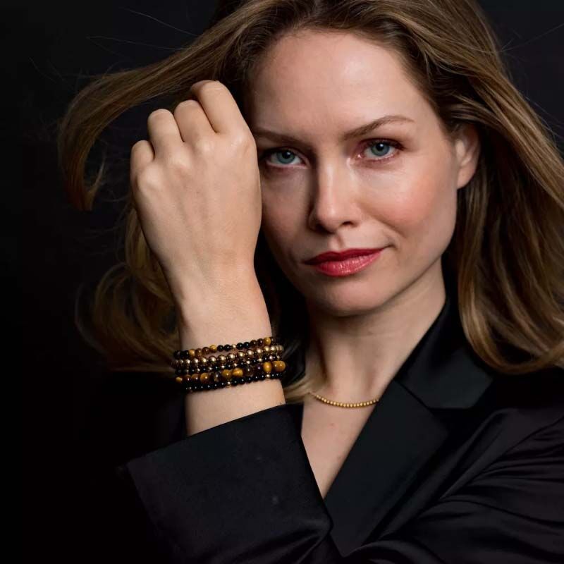 De armband is handgemaakt en bestaat uit 4mm kralen van tijgeroog en onyx. De warme bruintinten van tijgeroog worden versterkt door de diepe zwarte kleur van onyx, wat een boeiende mix van contrast en balans creëert. Geelvergulde edelstalen kralen voegen een vleugje luxe toe aan het ontwerp, terwijl de polish-afwerking zorgt voor een subtiele glans. De sluiting, eveneens van roestvrij staal met vergulding, garandeert duurzaamheid en een comfortabele pasvorm.