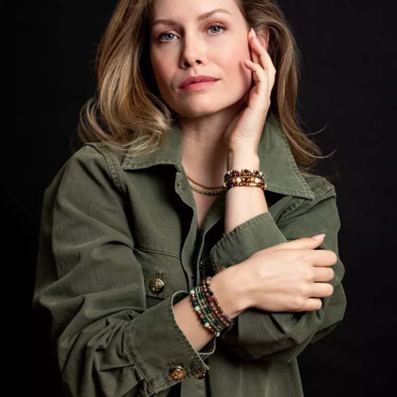 De polish-afwerking geeft de kralen een subtiele glans, waardoor de groene en gouden tinten extra tot hun recht komen. Deze armband is perfect om solo te dragen of te combineren met andere sieraden uit de Bracelets Beads collectie. Geleverd in een luxe Rebel & Rose sieradendoosje, is het een verfijnde toevoeging aan iedere sieradencollectie.