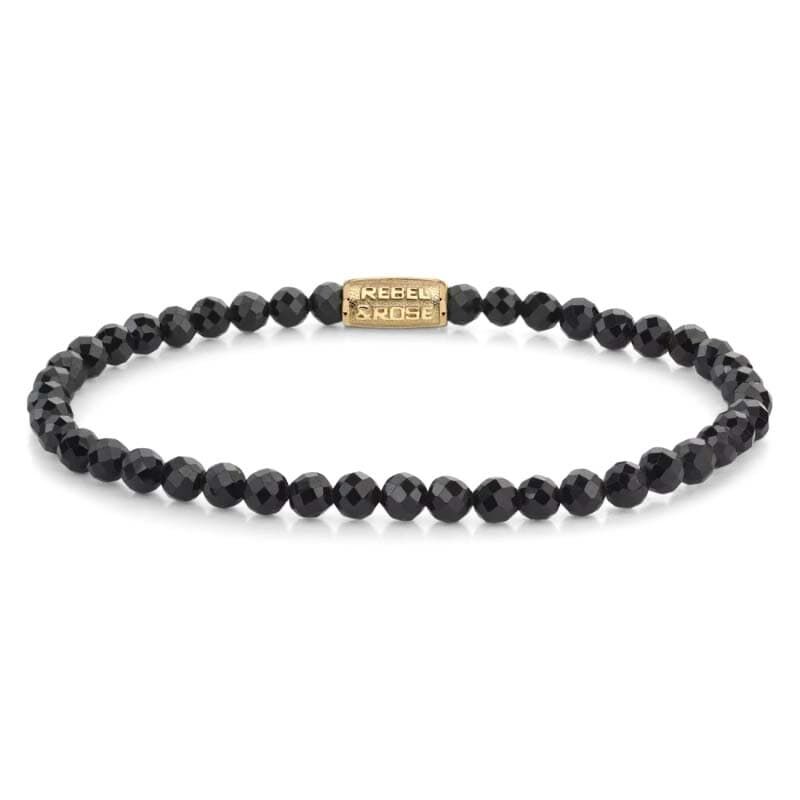De Rebel & Rose Bead armband Black Glam Rocks Gold - 4mm straalt een tijdloze elegantie uit dankzij de intense glans van black spinel stenen. Deze handgemaakte armband uit de Bracelets Beads collectie is ontworpen voor liefhebbers van een verfijnde en veelzijdige stijl. De 4mm zwarte spinelstenen worden prachtig geaccentueerd door een decoratieve siersluiting, uitgevoerd in hoogwaardige ion plating.