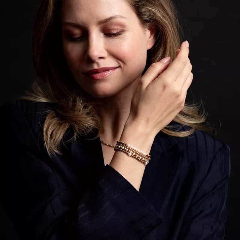 Deze tijdloze rekarmband is ideaal om solo te dragen of te combineren met andere kralenarmbanden voor een gelaagde look.