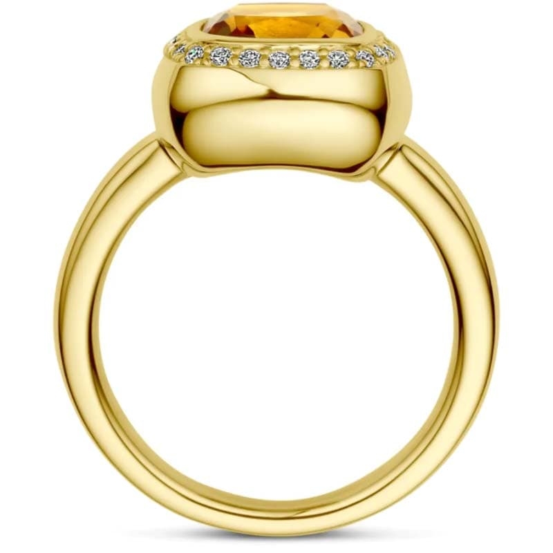 De kop van de ring is 12x12 mm. De citrien is 8x8 mm. Dankzij deze verhoudingen krijgt de ring een mooie presence op de hand, terwijl hij comfortabel blijft dragen.