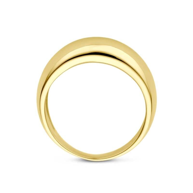 Deze ring is uitgevoerd in 14 karaat geelgoud (14k) en heeft een brede, bolle band uit de Home Collectie. Het ontwerp is bewust rustig gehouden: een solide gouden ring zonder versiering, bedoeld om comfortabel en dagelijks te dragen. Door de royale breedte heeft de ring meteen een duidelijke aanwezigheid aan de hand, zonder dat er edelstenen of zetwerk nodig zijn.
