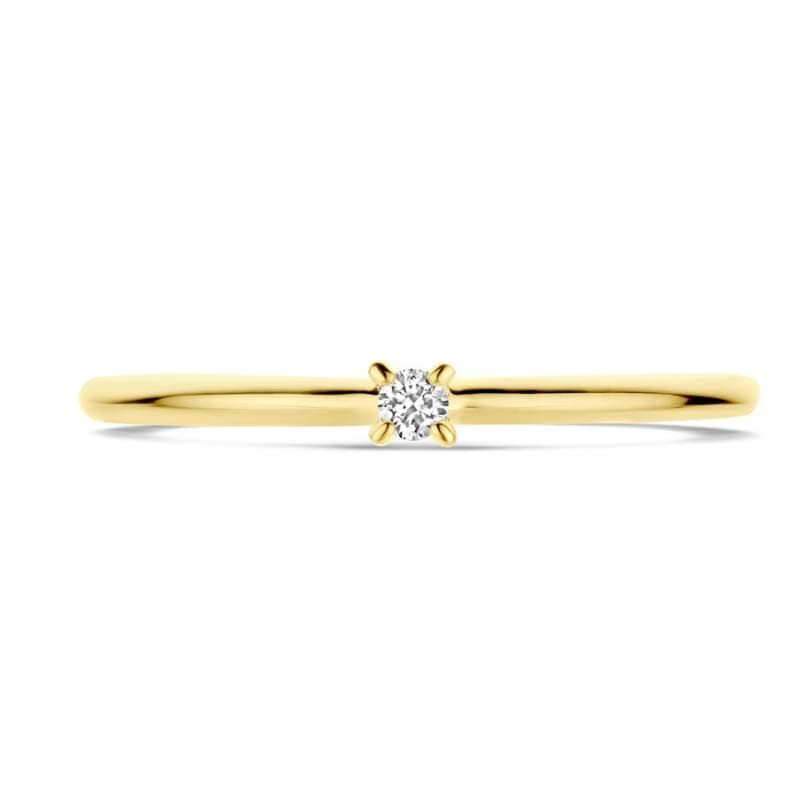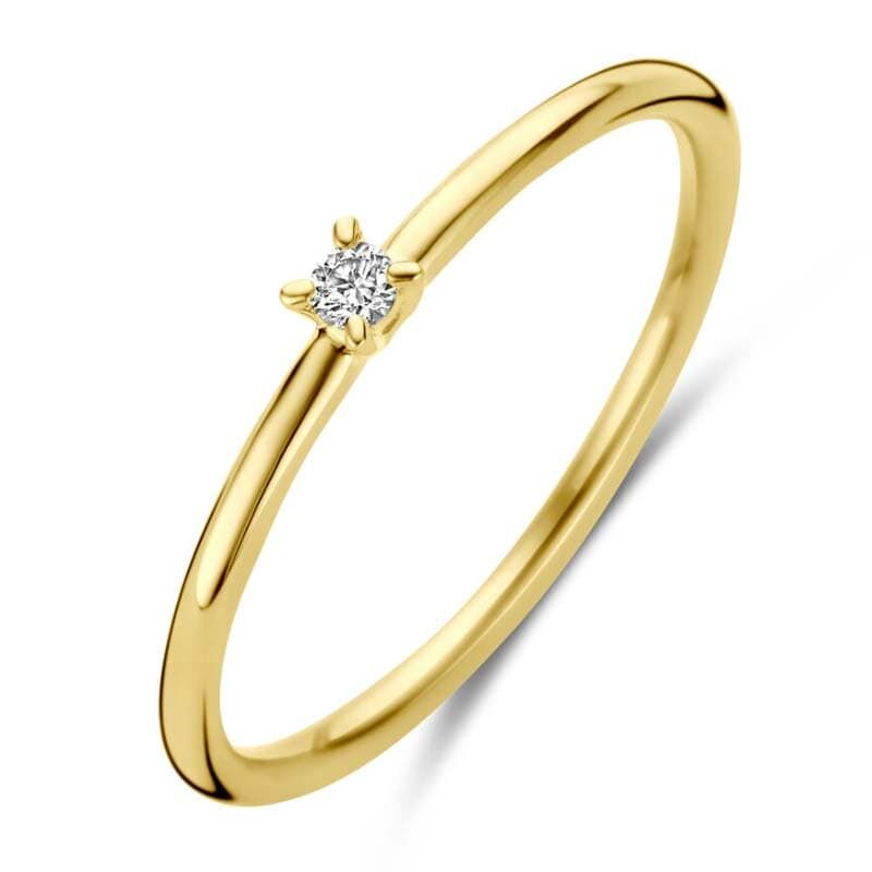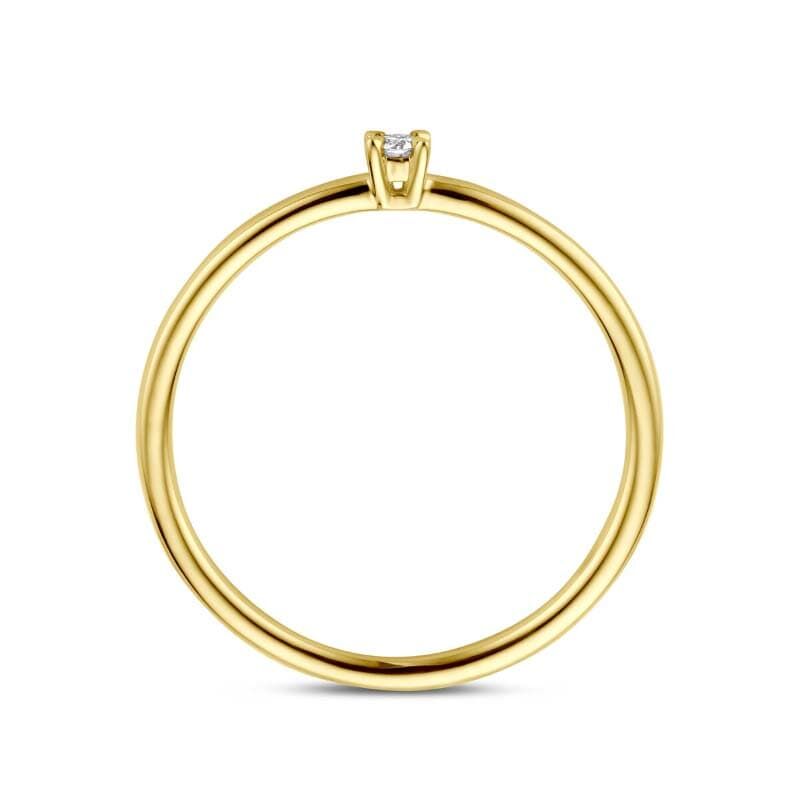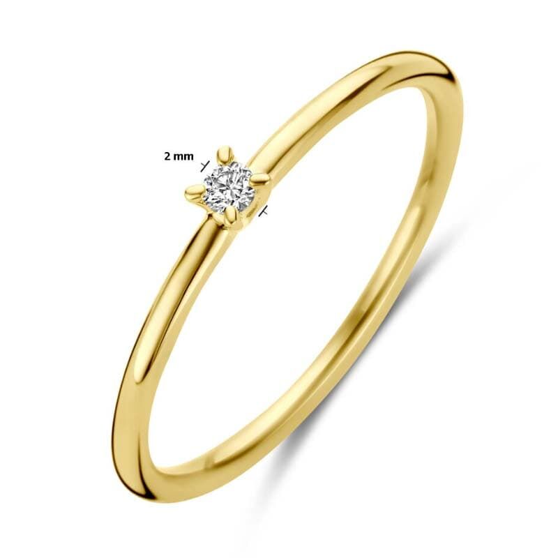 Deze elegante geelgouden ring is vervaardigd uit 14 karaat goud en voorzien van een schitterende diamant. Met een breedte van 2 mm straalt deze ring subtiele klasse uit, perfect voor dagelijks gebruik of als bijzonder cadeau.