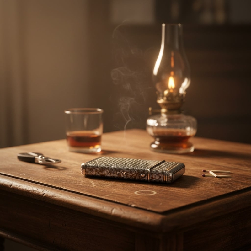 Een apart lucifervak in zilver bood daarom een praktische en veilige oplossing. Het maakte deze sigarenkoker tot een compleet, zelfstandig rookaccessoire: sigaar en vuur altijd samen, stijlvol verpakt. Dit type koker was dan ook een geliefd bezit van de welgestelde heer en werd vaak cadeau gegeven bij bijzondere gelegenheden.