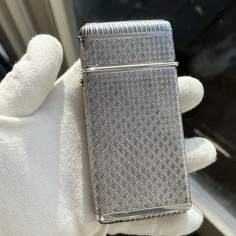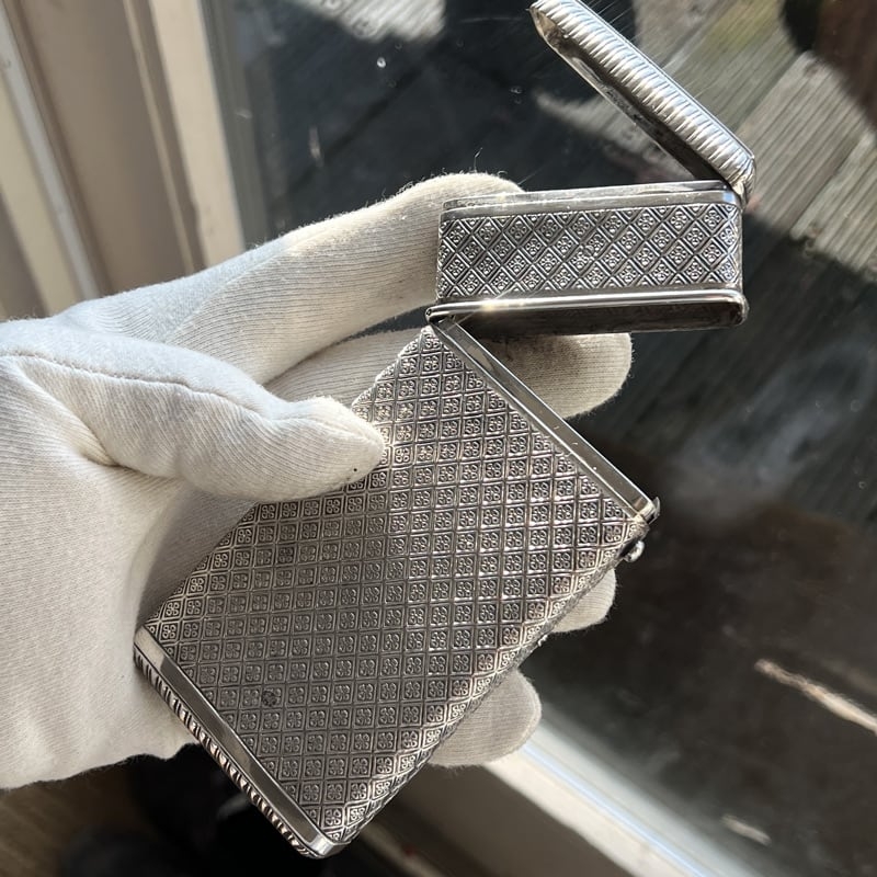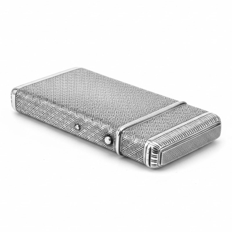 Wat dit exemplaar zo bijzonder maakt, is het extra compartiment bovenop, speciaal ontworpen voor het bewaren van lucifers. Slechts een klein percentage van de zilveren sigarenkokers uit deze periode is voorzien van zo’n geïntegreerd lucifervak – naar schatting hooguit één op de honderd.