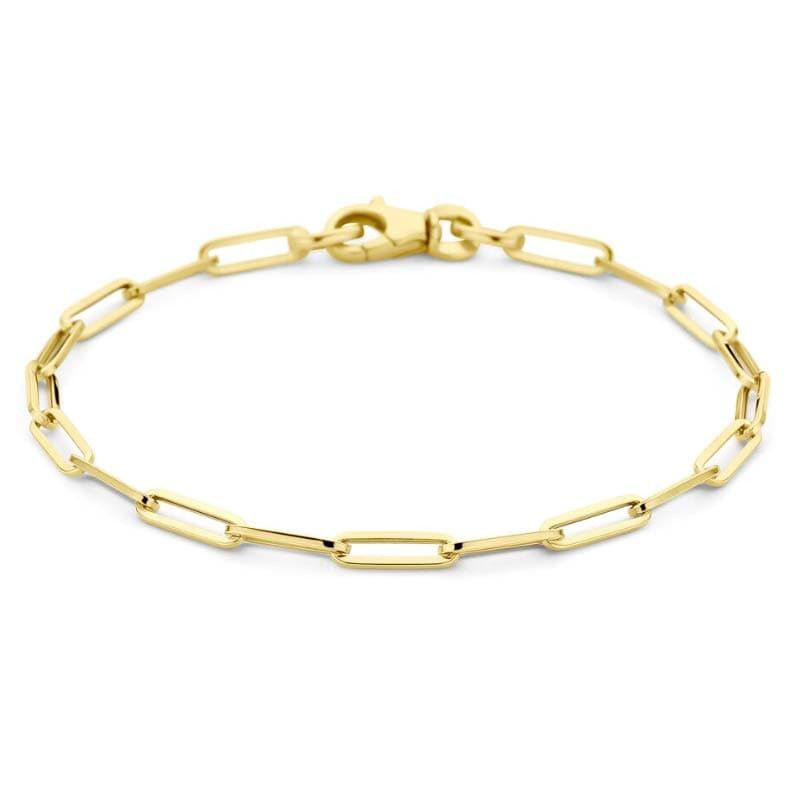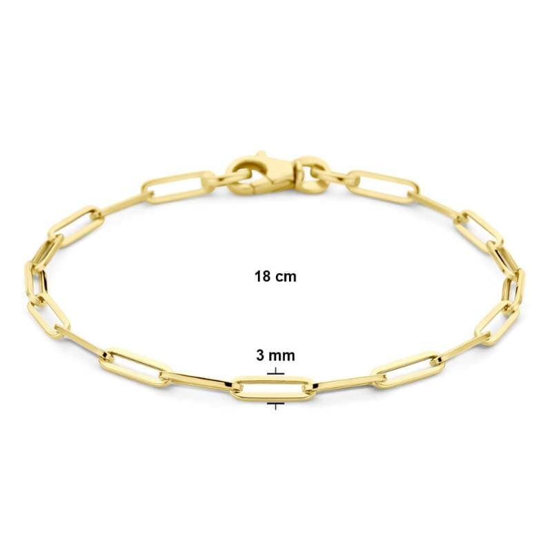De armband is gepolijst afgewerkt, waardoor het geelgoud mooi licht vangt en een heldere glans krijgt. Perfect om te combineren met andere gouden sieraden, van fijne ringen tot een horloge of andere armbanden.