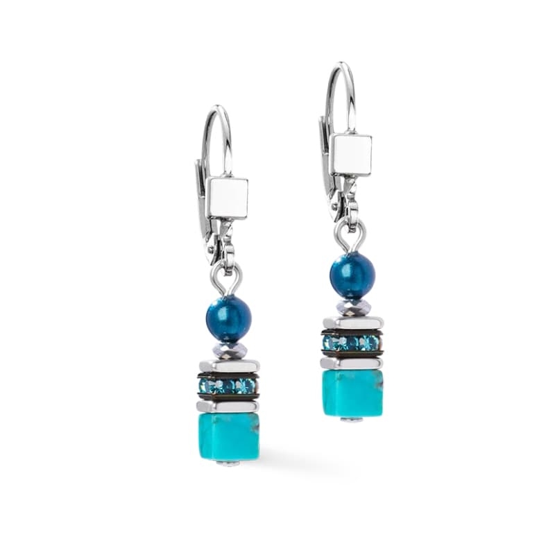 De Princess Teal Glow silver oorbellen maken de set compleet met een turquoise kubus van echte edelsteen, glinsterende strass rondellen en als finishing touch één Crystal Pearl by Swarovski® in teal. Dit geeft een zachte, luxe glans en een stijlvolle, samenhangende uitstraling met de ketting en armband.