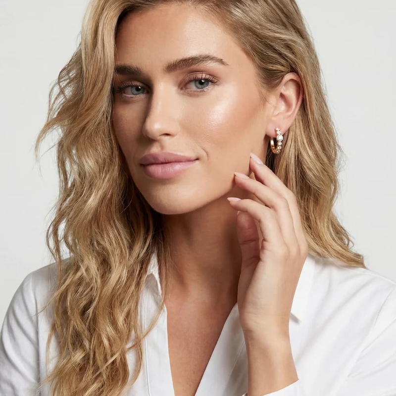 Met hun tijdloze ronde vorm en verfijnde schittering zijn deze oorbellen perfect voor zowel dagelijks gebruik als een feestelijke gelegenheid. Ze sluiten mooi aan rond het oor en geven iedere outfit een stijlvolle, moderne touch.