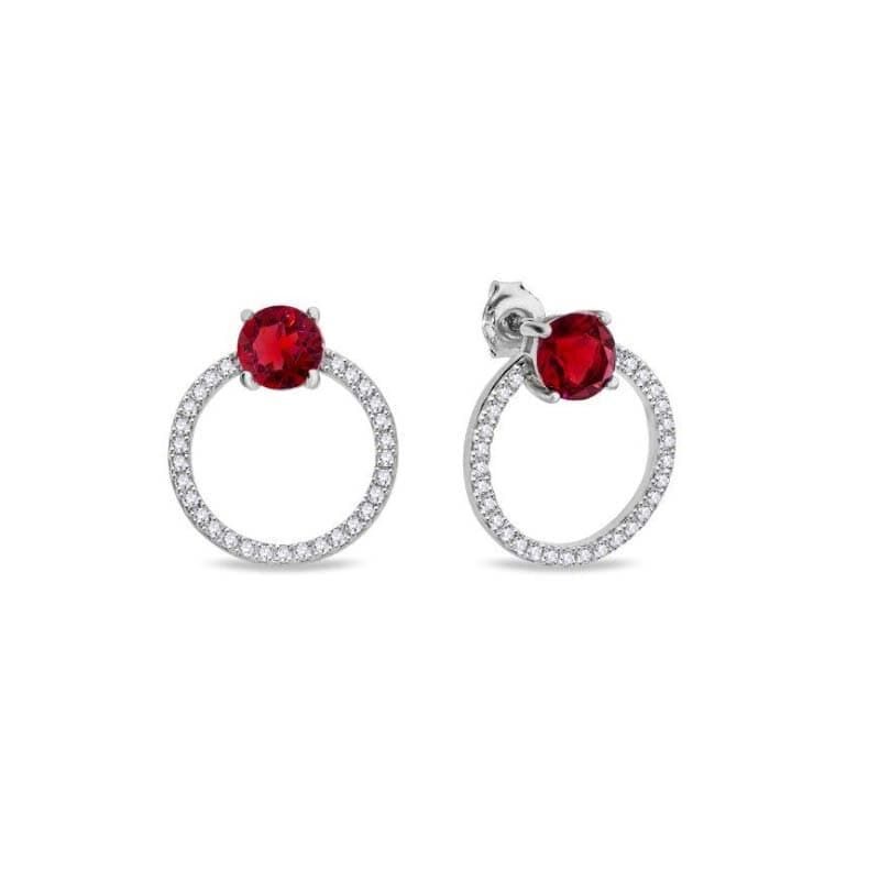 De Stardus Scarlet oorbellen van Spark Jewelry zijn zilveren oorstekers met een cirkel, bezet met wit kristal. Op de steker zelf is een felrode kristal geplaatst die het oorgaatje netjes bedekt. De oorbellen sluiten met pussets.