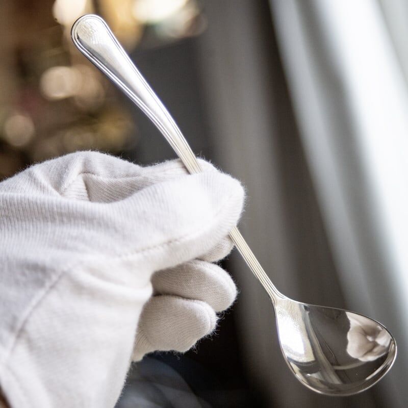 We kunnen de lepel klein graveren aan de achterzijde van de steel.