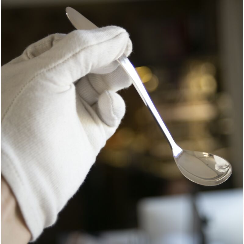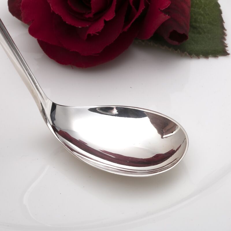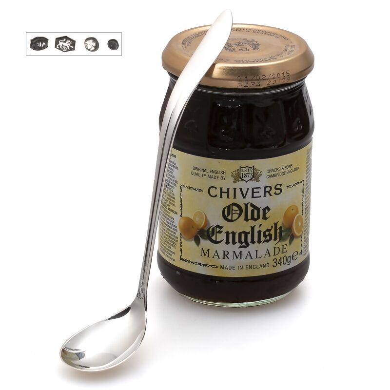 Zilveren jamlepel gemaakt door Gerritsen & Van Kempen te Zeist in 1954, model 400. Elegante zilveren jamlepel in model 400 naar ontwerp van Gustav Beran. De zilveren lepel is 16,5 cm lang en de bak is 3 cm breed, de lepel weegt 31 gram.
