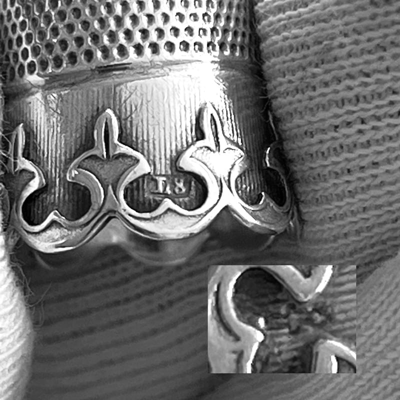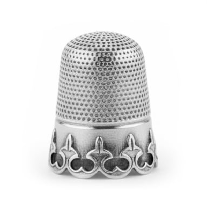 Mooie grote zilveren vingerhoed met een Franse lelie patroon gemerkt met het oude zwaardje voor Nederlands klein zilver en het meesterteken L.8 van Willem Littel.