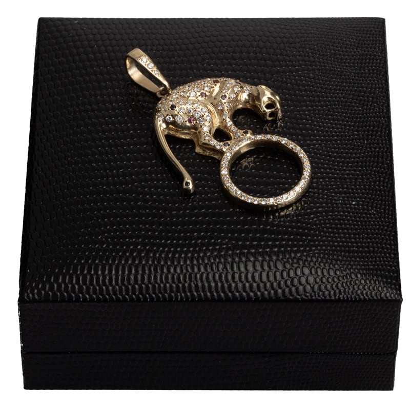 De panter staat symbool voor vrouwelijke kracht, onafhankelijkheid, moed en 'gevaarlijkheid' Femme fatale! Ook staat de panter in sommige culturen voor bescherming tegen kwade invloeden. De houding van de panter op een ronde vorm, verwijst naar de wereld, macht en beheersing. Het sieraad is duidelijk geïnspireerd door de Panthère lijn van Cartier uit de jaren 1970-1990. Een bijzonder, karaktervol vintage juweel met allure.