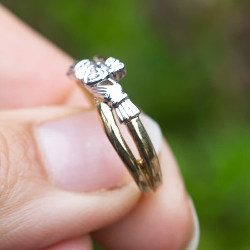 Deze mooie vintage ring is gemaakt van echt 14 karaat goud. Het ontwerp is geïnspireerd op de bekende Ierse Claddagh-stijl, die staat voor liefde, vriendschap en trouw. Een bijzonder sieraad met een betekenisvol verhaal!