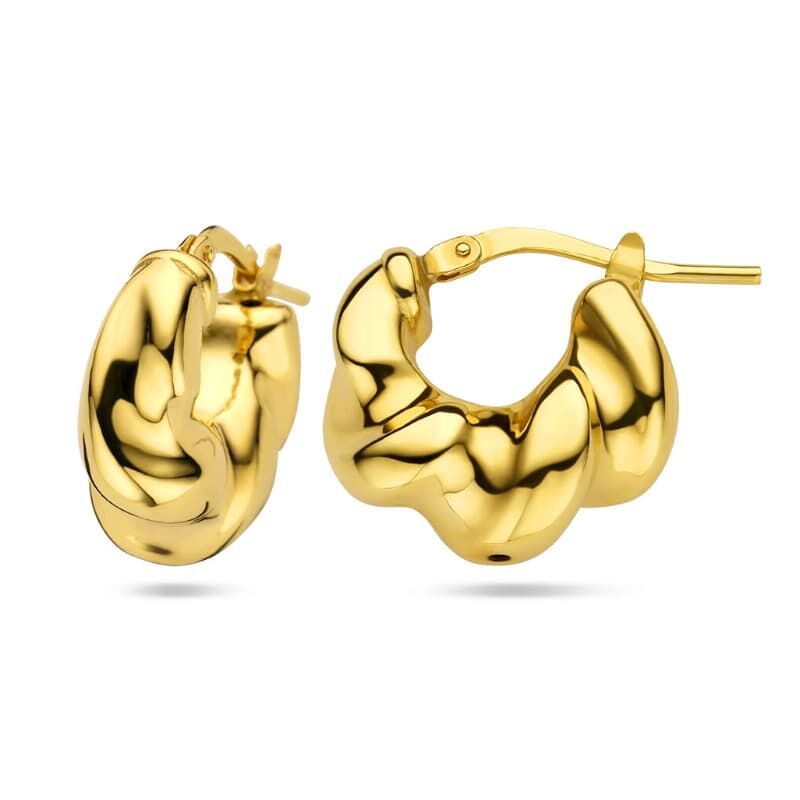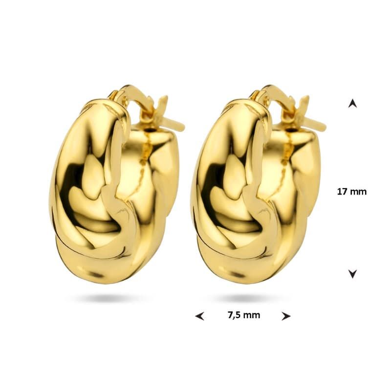 Leuke verguld zilveren oorringen in croissant model uit de Home Collectie. De oorringen zijn gemaakt van 1e gehalte zilver, met een verguld laagje. Diameter van de oorbellen is 17 mm. Dikte van de gebobbelde buis is 7,5 mm.
