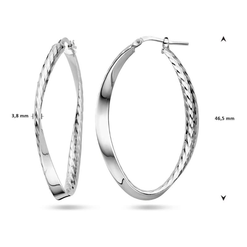 De oorbellen hebben een diameter van 46,5 mm en zijn 3,8 mm breed.