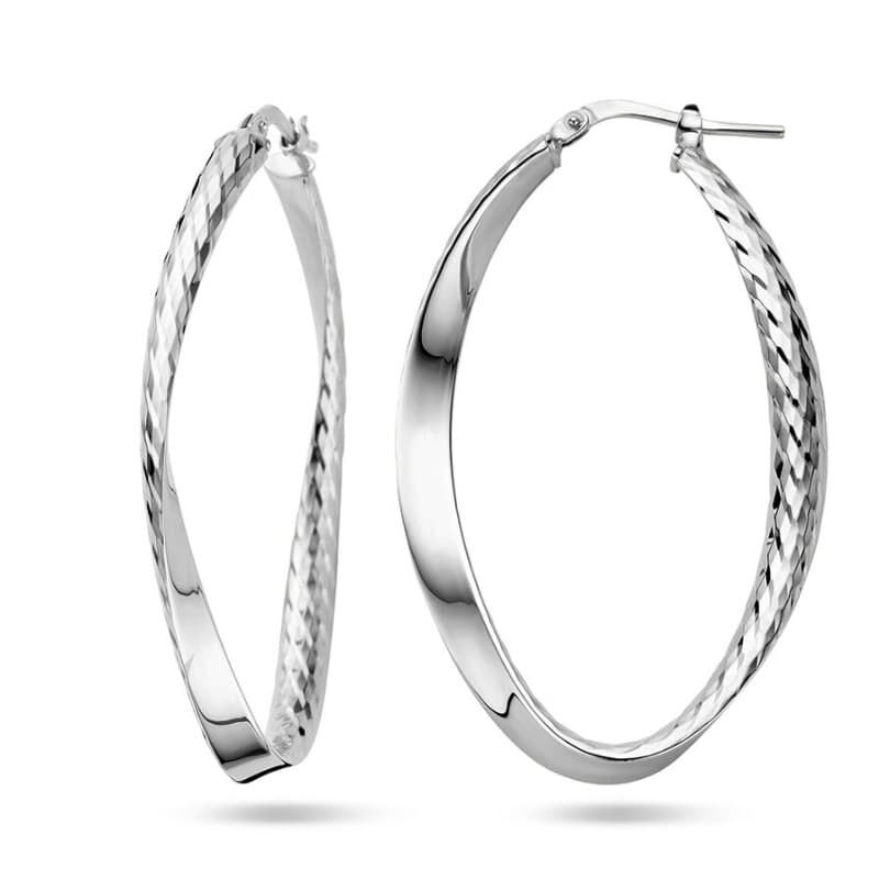 Gerhodineerd zilveren oorringen met een leuk gedraaid patroon, deels gediamanteerd uit de Zilver.nl Home Collection, in geschenkdoosje. De oorbellen zijn gemaakt van 1e gehalte zilver (925, sterling) gerhodineerd wat zorgt voor een mooie glans en extra bescherming. Leuke oorbellen voor in uw basis collectie, gemakkelijk te combineren met andere zilveren sieraden en geschikt voor elke gelegenheid.