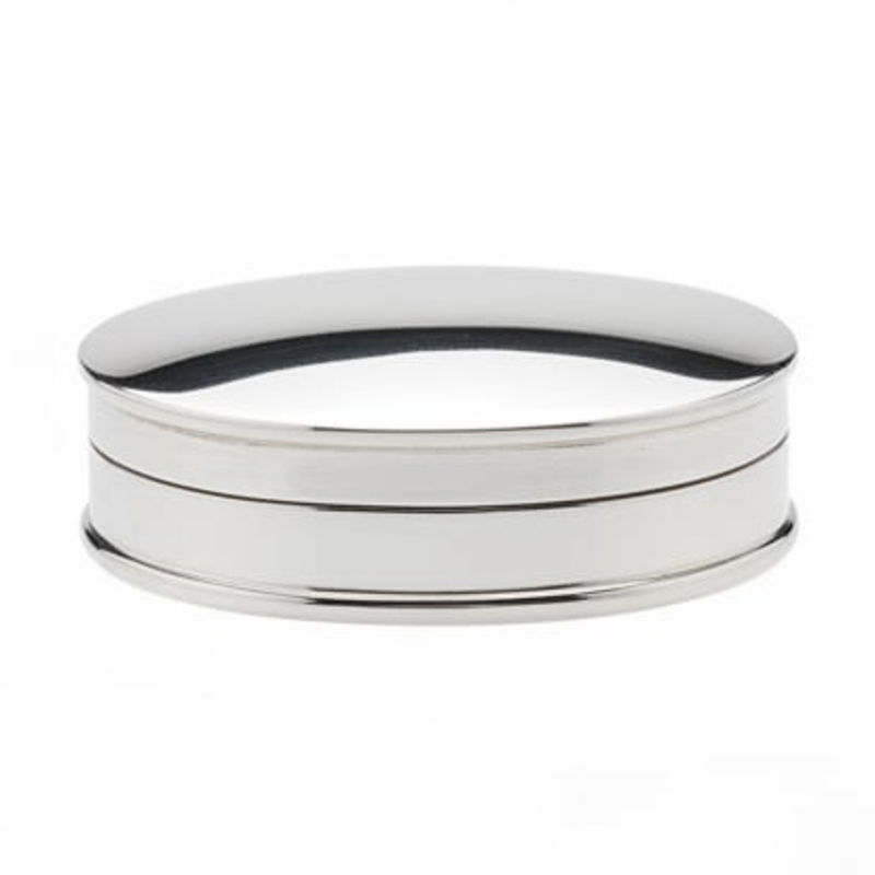 Ovaal zilveren doosje uit de Home Collectie, nieuw geleverd in geschenkverpakking. Het betreft een stevig en stijlvol doosje met scharnier en een goede sluiting. De afmeting van het 1e gehalte zilveren doosje is 3,5 x 1,2 x 1 cm.