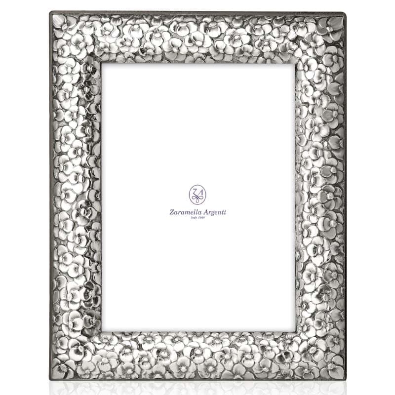 Zaramella grote zilveren fotolijst Firenze met bloemenmontuur. Fantastische fotolijst met een montuur vol zilveren bloemen, een echte blikvanger. Het zilveren montuur is maar liefst 3 cm breed. Deze vrolijke, originele fotolijst heeft een houten achterkant en de fotomaat is 20 x 25 cm. De fotolijst ontvangt u inclusief certificaat. Het is niet mogelijk om de fotolijst te graveren.