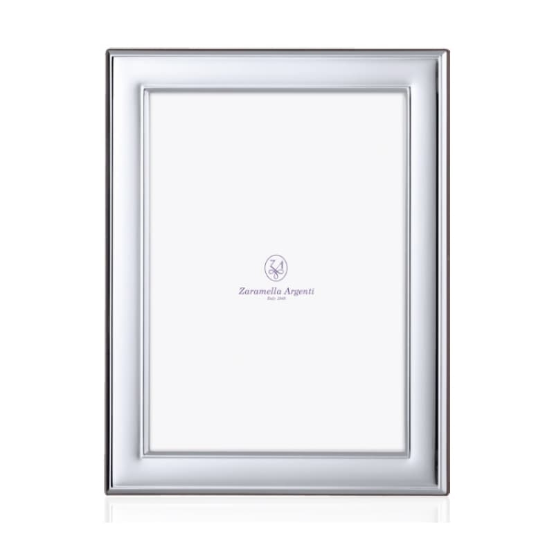 Zaramella 1e gehalte zilveren fotolijst model Kiev. Deze fotolijst heeft een glad zilveren montuur, het montuur is 18 mm breed. De fotolijst heeft een bruin houten achterkant. De fotomaat is 15 x 10 cm. U ontvangt de fotolijst in cadeauverpakking.