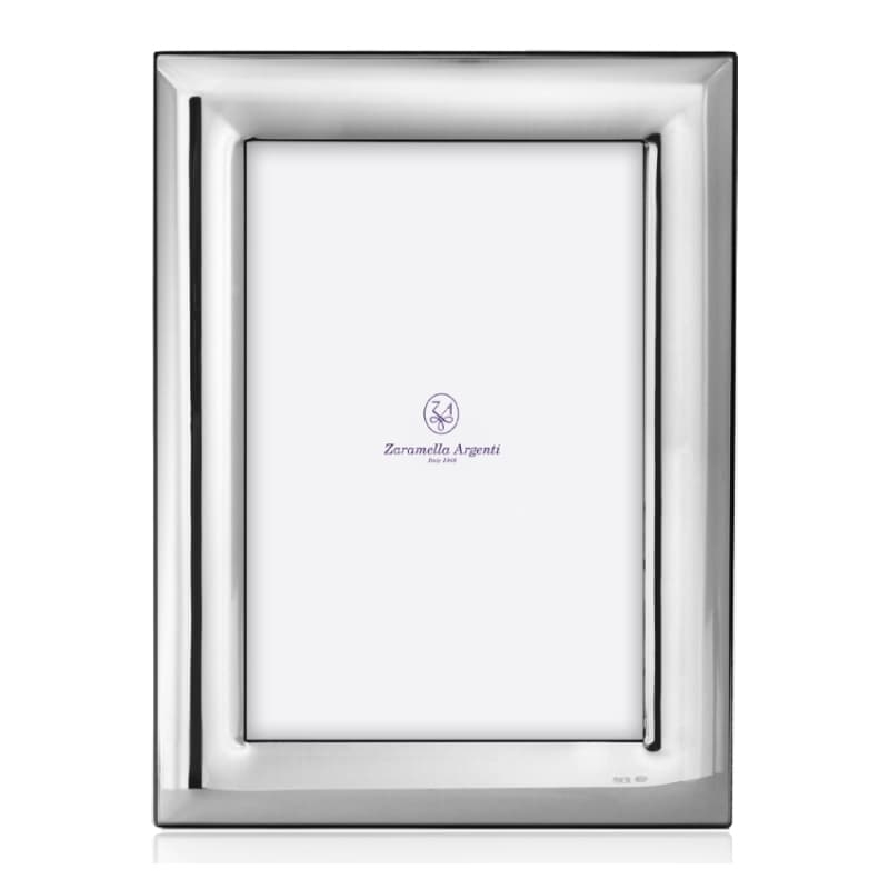 Zaramella 1e gehalte zilveren fotolijst model Tel Aviv. Deze fotolijst heeft een breed zilveren montuur, het montuur is 24 mm breed. De fotolijst heeft een bruin houten achterkant. De fotomaat is 18 x 13 cm. U ontvangt de fotolijst in cadeauverpakking.
