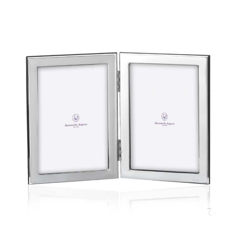Zaramella zilveren fotolijst King&Queen voor 2 kleine foto's. Strakke zilveren fotolijst met scharnier voor 2 foto's met fotomaat 9 x 6 cm. Deze fotolijst heeft een mooie houten achterkant. U ontvangt de fotolijst met certificaat.