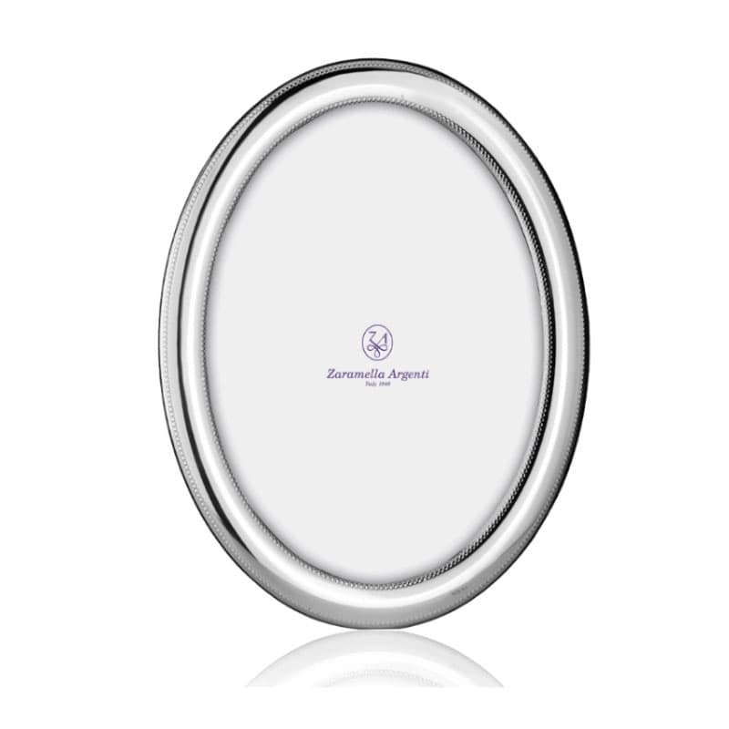 Deze ovalen zilveren fotolijst heeft een montuur van 11 millimeter breed dat aan beide zijden is voorzien van een parelrandje. De lijst model Saint Michel is geschikt voor een staande foto met een afmeting van 15 bij 10 centimeter. De achterzijde is vervaardigd van hout, wat zorgt voor een stevige en degelijke uitstraling.