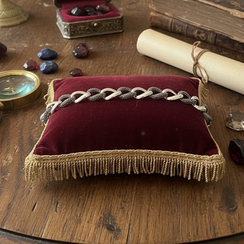 Markasiet is een edelsteenvorm van ijzersulfide die vaak gezaagd en gezet wordt om een grafietachtige glans aan zilverwerk te geven.zilver.nl De zetting volgt het klassieke gourmet-type en biedt een subtiele schittering zonder opzichtig te zijn.