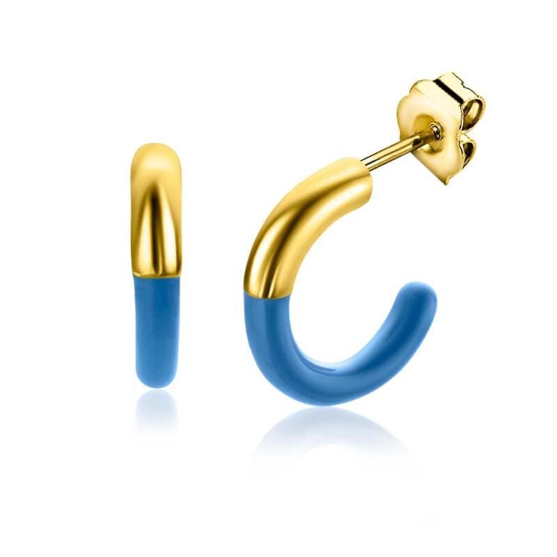 ZINZI gold plated oorsieraden met blauw emaille – stijlvol design in echt zilver (925) met liefde ontworpen voor elke dag comfort én uitstraling.